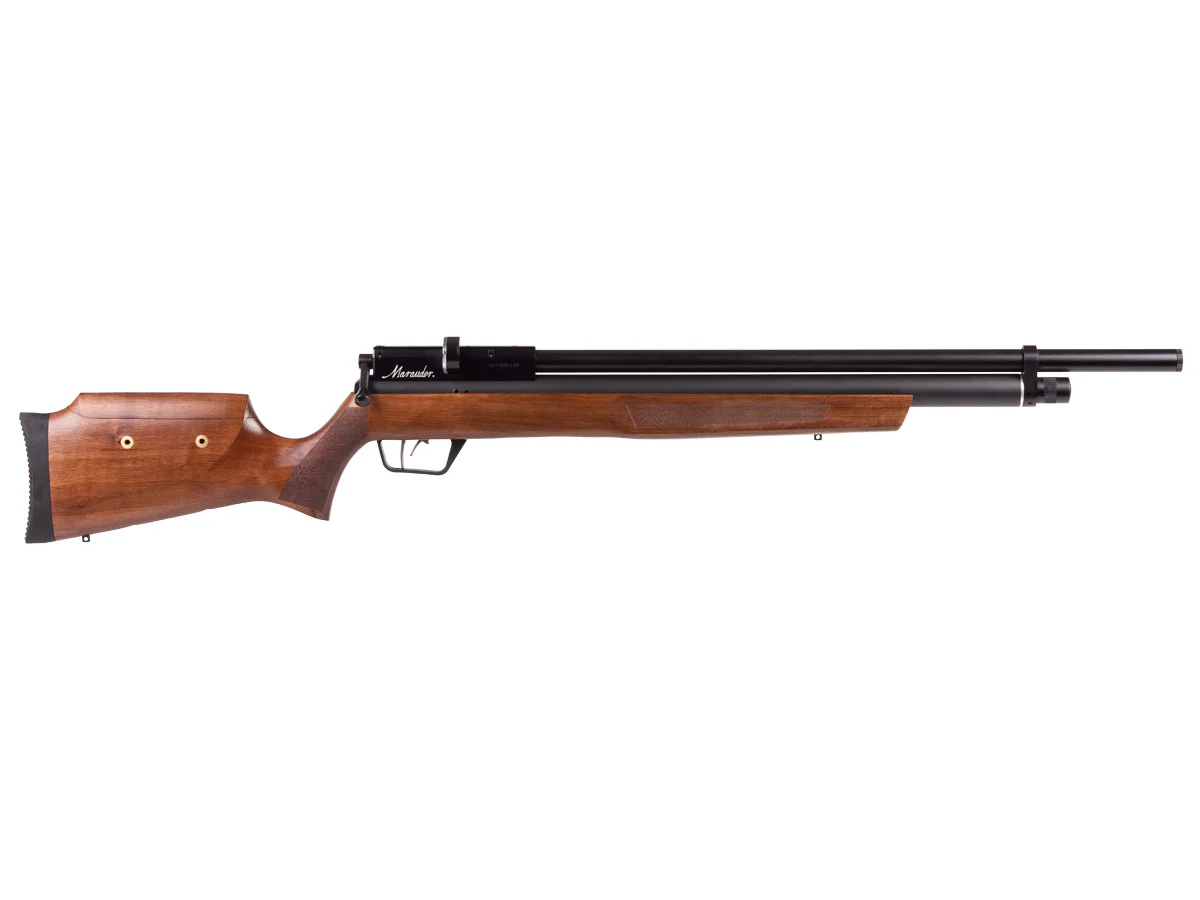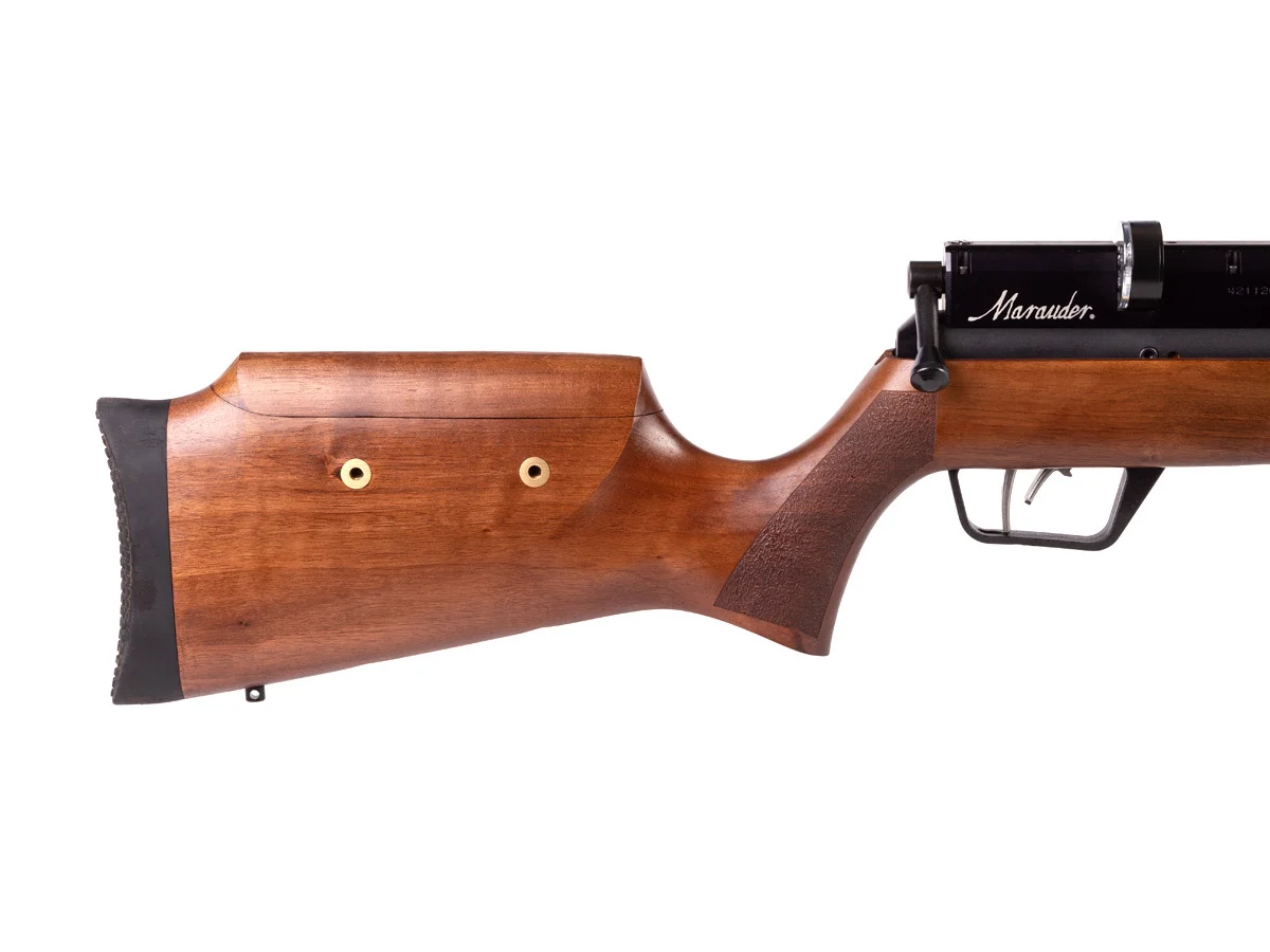 Marauder versi ini menggunakan walnut stock dengan desain ambidextrous dan soft rubber recoil pad untuk kenyamanan saat digunakan. Rel 11mm dovetail memungkinkan pemasangan scope sesuai kebutuhan karena tidak tersedia iron sight.