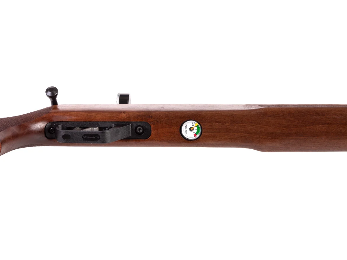 Senapan ini memiliki multiple power settings (adjustable power), built-in manometer untuk memantau tekanan udara, serta aman untuk dry fire. Dilengkapi upgrade Crosman barrel untuk peningkatan performa dan konsistensi tembakan.